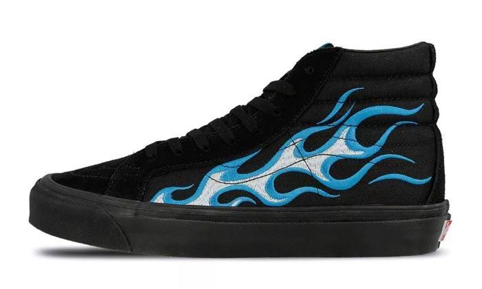 Skool LX 以简约为主,选择了 WTAPS 最具代表性的军绿色和深蓝色为主,SK8-Hi LX 在侧面刺绣有炫目的黄、蓝色火焰,Era LX