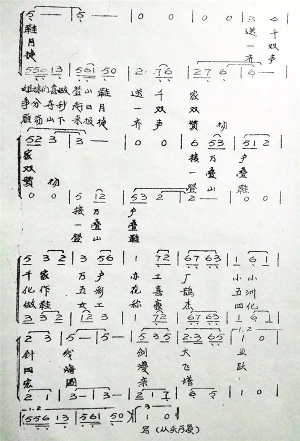 王志成先生《喜做登山鞋》歌曲的油印稿。