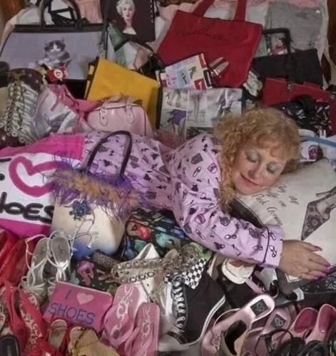 日积月累,苏珊的家里堆满了无数的鞋子,柜子里是,地板上是,阁楼上全部是鞋子,最后没有地方放,只好堆在床上。看着这些鞋子苏珊十分满足,为了这些鞋子她已经花掉了1000多万,但苏珊认为这些鞋子并不能用金钱来衡量。
