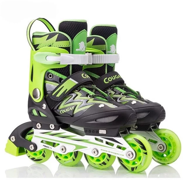 这款儿童轮滑鞋采用透气网格设计,可以调节鞋身按钮,鞋底的加强型合金支架,整双鞋子都比较稳固,右脚还有单刹车,能够保证玩的过程中更加安全。