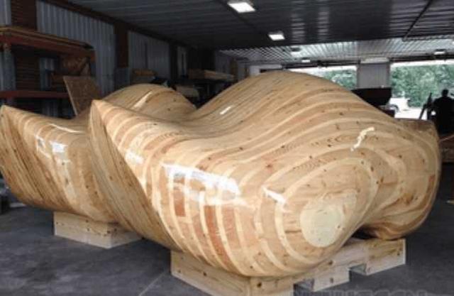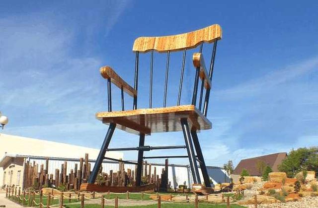 其次就是木制的摇椅了,这把摇椅高17.25米,宽10米,比汽车还要高出几倍,相当于6层楼的高度。这把巨大的木椅伫立在这个广场的中央,一幅王者风范的样子,好像在高调的炫耀。这把座椅让人产生坐上去的冲动,利用机器上去的人,还没有它的椅扶手高,就算是几个大汉来了,也只如一只小鸟的大小。想要想平常一样坐上椅子,恐怕只有真正的巨人才做得到吧!