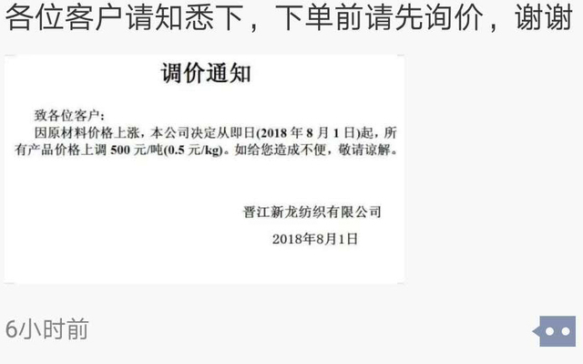 自8月1日起又一纺织重要原材料——分散染料要涨价了!自2018年8月1日起,分散常规系列上调2000-5000元/吨。涨势相当震撼!而这估计还只是开始。据悉,受中间体价格继续上涨的影响,染料涨价趋势持续了近两个月。从5月26日起作为活性染料最重要的染料中间体,H酸、对位酯正式涨价,H酸从5万元/吨涨至7万元/吨。染料污染大,涨价的主要原因还是环保限产。苏北地区,由于盐城,连云港环保事件的持续发酵,连云港灌南、灌云、盐城响水三大化工园区,所有化工企业一律停产整治。整个片区及其生产H酸的工厂都受到了影响,再加上这些年环保一直比较严,小型的中间体生产商持续的关闭,剩下的已经没有几家。目前苏北染料企业大部分仍未复产,导致染料及中间体仍在高位,此次8月1日主流染料企业上调分散黑价格,应该是对下游市场的一个试探,染料企业与下游印染企业的又一次博弈。水涨船高,此次原材料价格波动受影响最大的无疑是鞋服行业企业,成本上涨使得企业自身的调节和市场把控能力备受考验。对于原材料上涨,行业人士直指是因环保整治导致的供需失衡,环保整顿,关停一批、淘汰一批,转产一批,因而造成了现下这个市场局面,只希望这种困境不会持续太久。