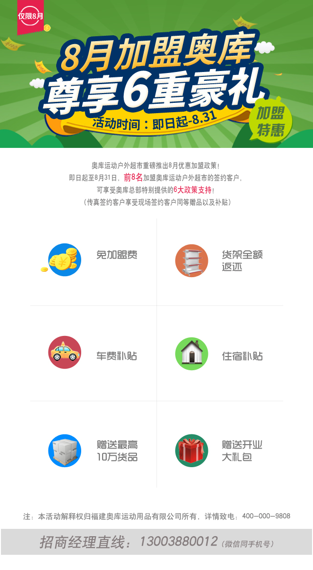 8月加盟奥库运动超市享六重豪礼