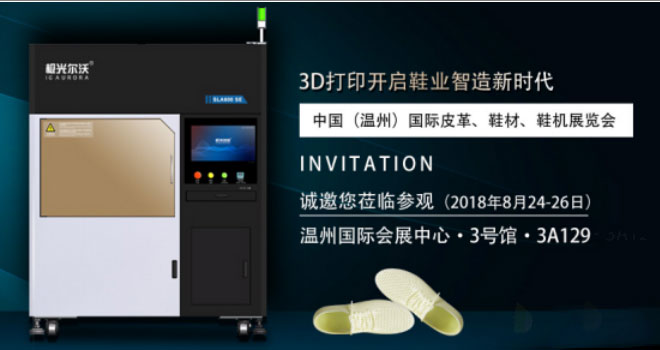 【-鞋材资讯】第二十三届中国(温州)国际皮革、鞋材、鞋机展览会”暨同期举办的针织机械/飞织鞋面、缝制设备、合成革展览会(统称2018“温州国际皮革展”),将于2018年8月24-26日在温州国际会展中心举行。极光尔沃作为鞋类3D打印设备制造商应邀参展,将携带最新SLA工业级3D打印产品亮相(3号馆3A129展位)。