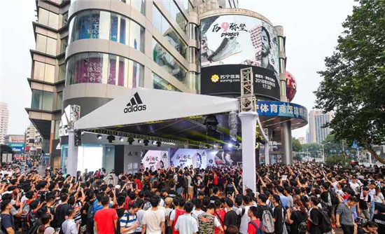原以为罗斯中国行南京站就这样匆匆结束,实则蕴藏着巨大的惊喜。新街口苏宁体育商茂店现场活动结束后,罗斯竟化身快递小哥开始了骑车送鞋。打开门发现是罗斯时,球迷激动地不知所措。