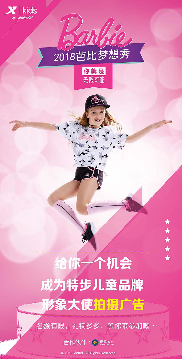 2018特步儿童芭比梦想秀报名通道开启绽放你的无限可能!