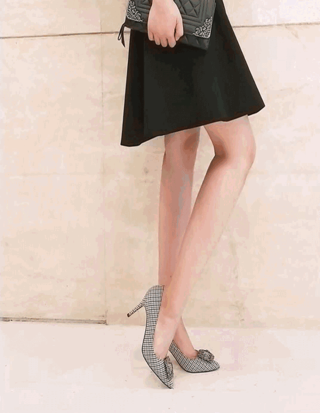 黑白相间的千鸟格花纹打破了格纹的单调