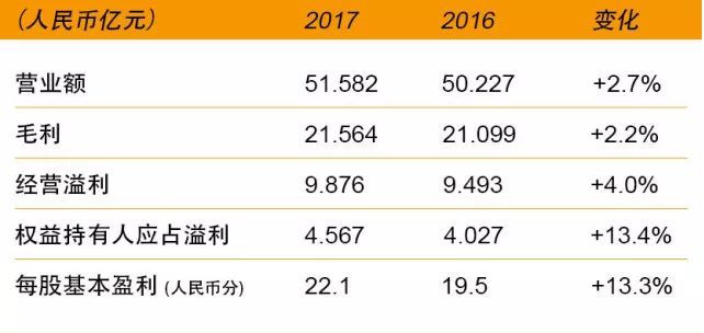 在发布的2017年年度业绩中,收入同比增长2.7%,净利润同比增长13.4%。虽然成绩不算亮眼,但也还算平稳。