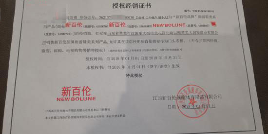 14日,记者来到了莱芜大润发二楼新百伦专卖店,发现门面标识为“新百伦NEW BOLUNE”,与“”只有几个字母之差。门店销售人员告诉记者:“我们的鞋子都是新百伦真品,之所以这么便宜是因为最近搞活动,真假的话,你们可以扫一下鞋子上的二维码查真伪。”记者扫了一下鞋子上的二维码,显示产品为广州新百伦企业管理有限公司,授权江西新百伦领跑体育用品有限公司生产销售。随后,销售员向记者解释了“新百伦”是中国的一个品牌,不同于New Balance,并展示了由江西新百伦领跑体育用品有限公司授权莱芜大润发新百伦专卖店的授权经销证书。