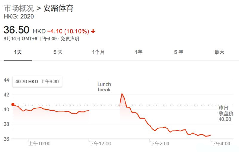 ▲安踏体育今日(注:14日)股价走势
