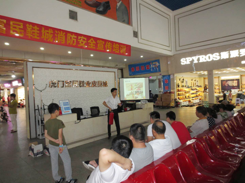 【-行业动态】昨天上午,消防大队到富民鞋业皮具城进行消防安全培训,这次培训参与人员有商管员、治安队、清洁工以及商户代表等。