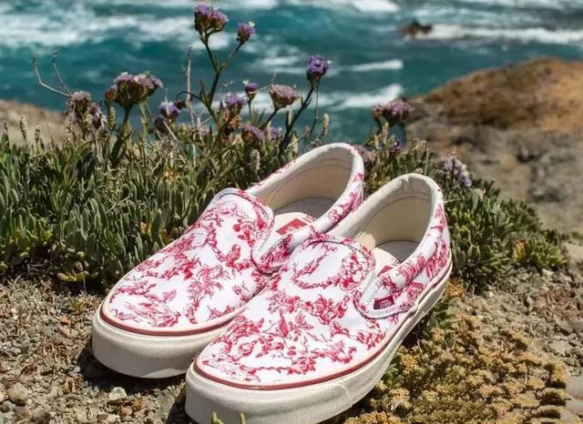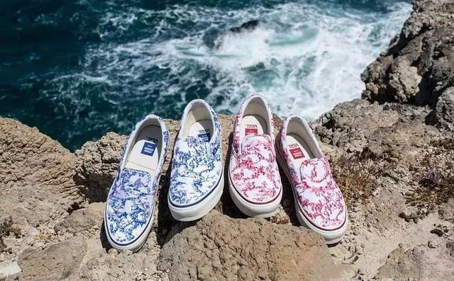 此次联名以国粹瓷器为灵感,运用经典的 Slip-On 系列为基底,抒发对于中国风的热爱之情。分别采用经典的国粹蓝和中国红为主色调,鞋面呈现赋有花纹。