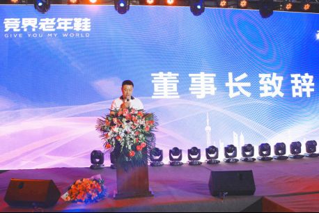 河北吉星宇集团董事长、竞界公司董事长王志永先生在大会现场致开幕辞。他说,竞界老年鞋坚持以用户为导向,将用户放在第一位;以经销商为导向,完善服务机制。择一事钟一生,把竞界老年鞋作为奋斗终身的事业,时刻都在倾听市场的声音,发掘消费者的真实需求,以产品创新为驱动力,打造具有超高性价比的针对老年人的功能性产品,打造其它模仿者、跟风者无法企及的卓越产品。
