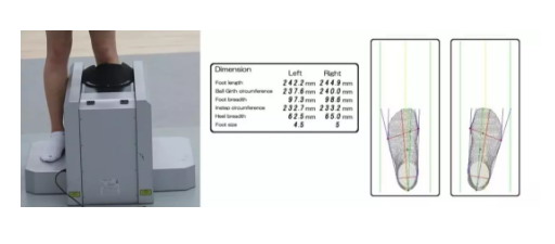 首先需要对消费者的足部进行三维扫描,获取足部外形的基础数据,包括足长,足宽等相关参数。
