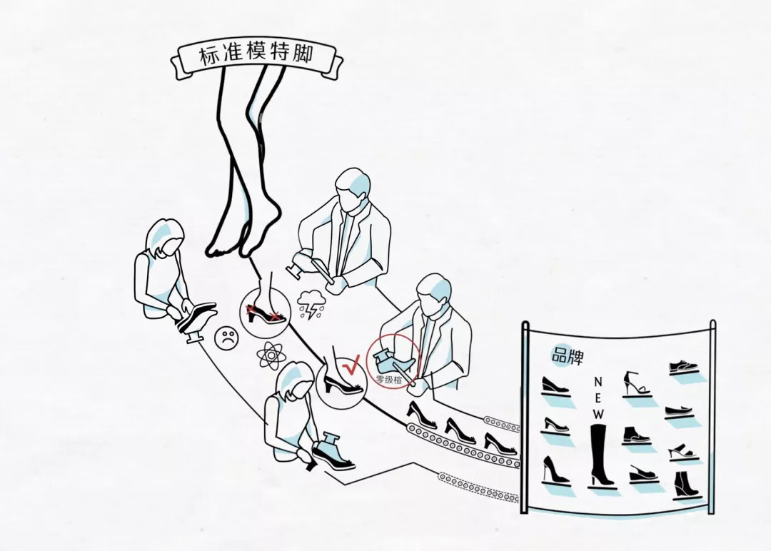 由品牌的标准模特脚开始,