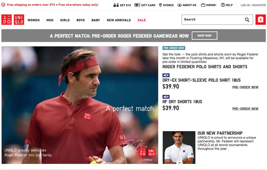 2018年,费德勒结束与美国运动巨头 长约20年的合作,宣布转投优衣库,并首次身穿优衣库运动服登上温布尔顿赛场