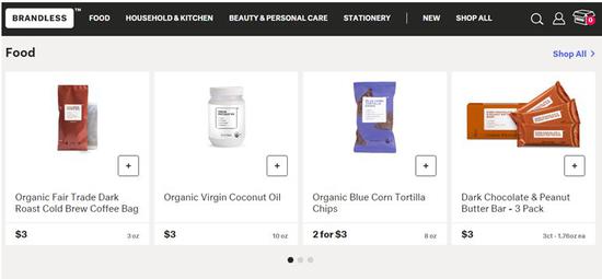 从网站上可以看到,Brandless平台展示的各种商品,从食品到洗面奶再到办公套装,全都标价3美元。这很容易让人联想到我们走在大街上,经常会听到一些门店传出的诸如“这个九块九,那个九块九,全都九块九”的广播声。可是,大多数人很可能在经过门店时,往往连步伐都不会减慢半分,更不用说进店浏览商品了。