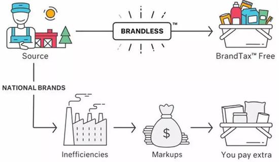 在Brandless创始团队看来,绝大多数消费者都会面临这样一种状况:花了15美元或20美元,却买了一件价值仅有2美元或3美元的东西,而多出来的那部分支出,便是消费者为品牌溢价的买单。就像一个普通的价值0.5元的回形针,一旦贴上了蒂芙尼(Tiffany&Co。)的标签,立马可以卖到1万元,高价的背后正是品牌的溢价效应,而品牌的附加价值在很多时候远远高于商品的实际价值。