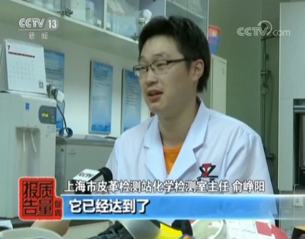 上海市皮革检测站化学检测室主任 俞峥阳:正常情况下,我们是100毫克每千克是不合格,它已经达到了将近达到了400毫克每千克。
