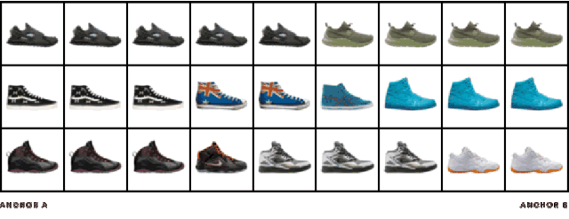 ¡¡¡¡ÎªÁËչʾѧϰºóµÄÁ÷Ðβ¢¼ì²éѧϰÇúÃæµÄ¡°Æ½»¬¶È¡±£¬ÎÒÃÇͨ¹ý²åÖµ·¨½øÒ»²½¿ÉÊÓ»¯¡£Ñ¡Ôñ¿´ËƲ»Í¬µÄ³±Ð¬×÷Ϊêµã(anchors)£¬È»ºóÅжÏËüÃÇÔÚÒþ¿Õ¼äÖеĹý¶É¡£Ã¿¸öÒþÏòÁ¿µÄ²åÖµ±»½âÂë³ÉͼÏñ¿Õ¼äµÄÊÓ¾õ¼ìÑ飬²¢ÓëÕû¸öĿ¼Àï×î½Ó½üµÄʵ¼Ê²úÆ·ÏàÆ¥Åä¡£¶¯Í¼ËµÃ÷ÁËÓ³ÉäÑ§Ï°ÌØÕ÷µÄ¸ÅÄî¡£