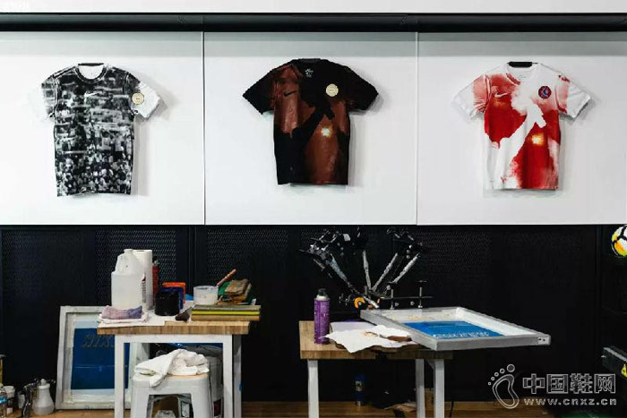 安德拉德为这次的展览作品增添了一些标志性的LA风格,他们将一系列定制的足球运动服装与Mercurial的图形设计并列。用他自己的话说:“我想专注于足球比赛中的特殊时刻,那就是对比赛的激情和热爱。当你还没有成名或拥有财富时,你享受在街上自由自在踢球的感觉,并且把进球看作是至高的荣耀。在这个激动人心的时刻我们不仅仅是自己开心也可以同那些帮助过我们的兄弟、朋友一起庆祝。”