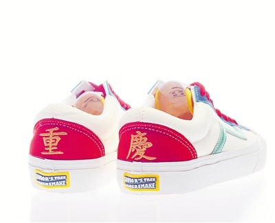 老白说,设计灵感来自母亲,母亲生日是6月18日,也是重庆直辖市正式挂牌的日子。“妈妈对重庆这两个字的理解,比我更深。有一次她过生日,我回家陪她,发现她在十字绣上绣上了重庆两字。我觉得,正好可以用在我的鞋子上,就把她的刺绣拓下来。”