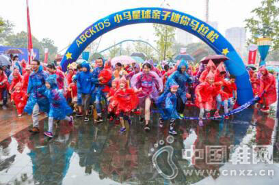9日欢乐开跑当天成都的天空下起了雨,为了防止大家被雨淋湿着凉,并且能够方便的奔跑,于是ABC KIDS在给大家分发号码牌的同时还准备了雨衣,即便天公不作好,潮爸潮妈与宝贝们的兴致也丝毫未减呢!