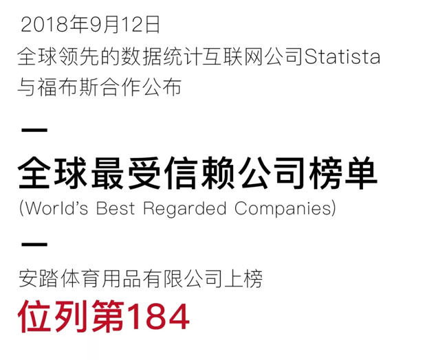 安踏上榜福布斯“2018年全球最受信赖公司”