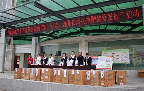 捐赠现场,温州市红十字会和温州市海关有关人员将物资发放到受助学生代表手中。受助学生纷纷表示,一定好好学习,立志成材,为家乡的发展贡献力量。