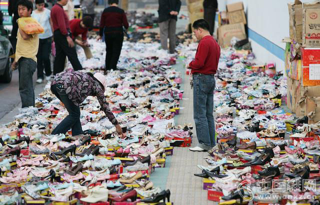 早年杭州街头甩卖的温州皮鞋