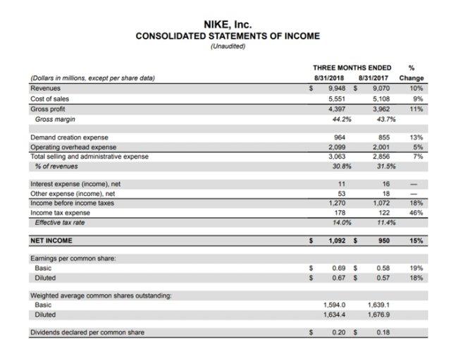 在本季度,耐克的收入上涨了 10%,达到了 99 亿美元。如果以中立货币来计算,那增长率则为 9%。耐克收入增长的原因在于:耐克在国际市场和耐克直销(NIKE Direct)方面的增长率达到了双位数;北美市场提供了强劲的推动力;耐克的各个品牌几乎都实现了增长,其中运动服装的增长是最大的。