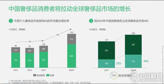9月26日波士顿咨询公司(以下简称BCG)和腾讯公司联合发布的《中国奢侈品市场消费者数字行为报告》就显示,中国个人奢侈品市场的复合年增长率到2024年将达到6%, 比2015年至2017年中国奢侈品市场4%的增速还要更高。