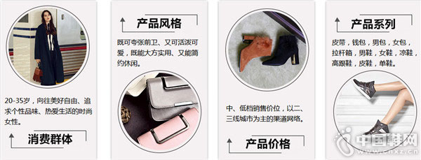 品牌是一家13年专业从事皮具、鞋品、女装、饰品等时尚产品研发、设计、生产及销售于一体的大型综合性企业。加盟店在全国遍地开花,加盟店面已超过1800家,是值得加盟的实力鞋包品牌。