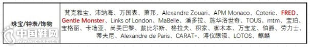 相比之下,珠宝与手表品牌变动幅度不算大,新进的品牌有法国珠宝品牌FRED、韩国品牌Gentle Monster。