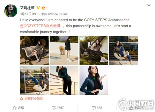 (艾玛杜蒙特微博宣布代言COZY STEPS)