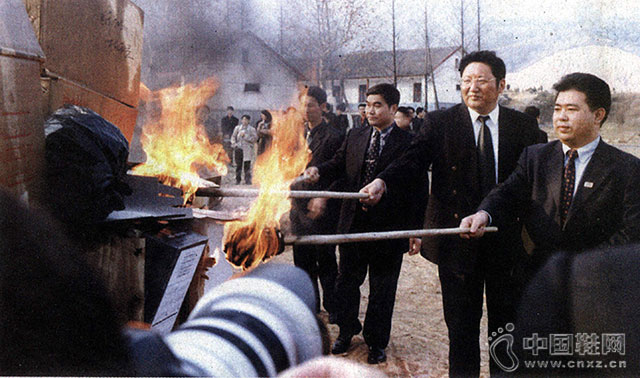 终于,在1999年12月15日,同样的地点——杭州武林门广场,王振滔点燃了奥康历史上第一把火“雪耻之火”,将2000双假冒的温州皮鞋被付之一炬。