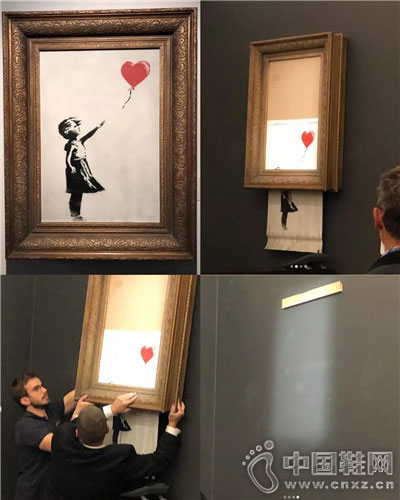 伦敦时间10月5日,英国街头艺术家Banksy的一件作品《Girl with a Balloon (女孩与气球)》在苏富比拍卖场以 104.2 万英镑 (约 940 万人民币)的价格拍出时,这位艺术家操控画作内置的碎纸机自毁画作,引起全球一片哗然,创造了艺术史上新的历史性时刻。
