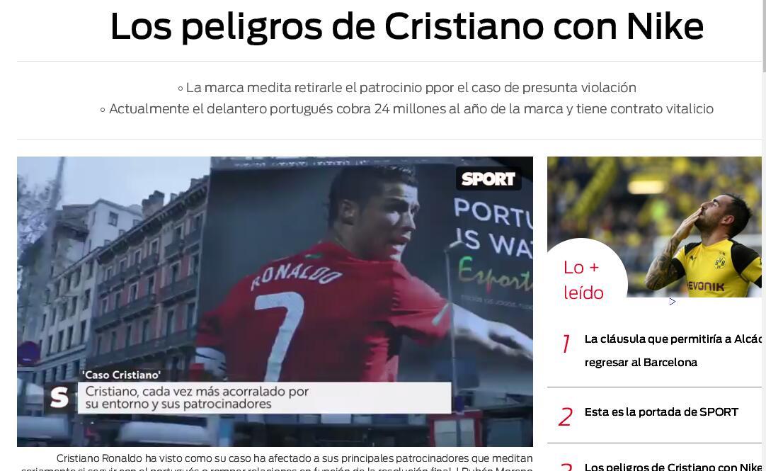 由于C罗受到涉嫌强奸的指控,该案件还处于调查审理的阶段,最终的结果将会影响到C罗的前途。当事件曝光之后,曾发表声明称,将会密切关注事态的发展。C罗和耐克在2003年就开始了合作,2016年,耐克与C罗签下了终身的赞助合同。《每日体育报》称,如果没有耐克的赞助,C罗每年至少会损失3500万欧元。