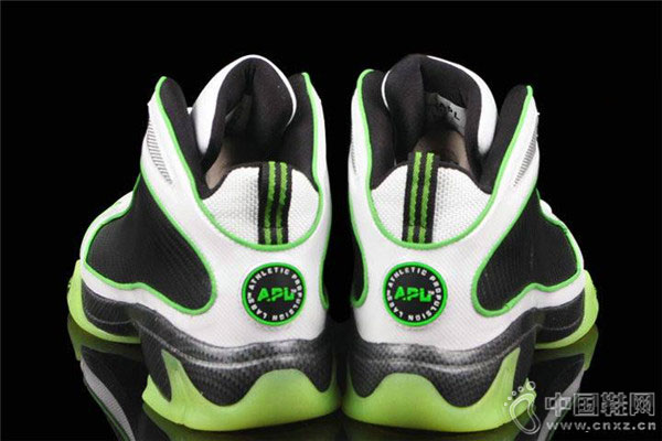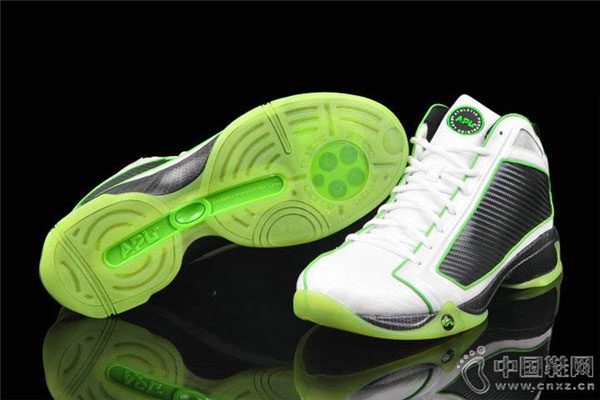 先从外观上看这双APL球鞋,鞋面的部分材料添加了仿碳纤维,让人感觉到了强烈的科技感,替代了传统的皮革材质,使得这双鞋相比其他鞋来说,更为轻巧。在当时,这项技术,也为人眼前一亮。但有得就有失,在减轻了鞋子的重量也导致了透气性变差,而且鞋帮的填充物也对透气毫无帮助。此外,球鞋的内部设计和他的特殊功更能让人诧异,鞋子的底部由布满弹性的太空材料EVA和APSPOX组成,在当时,售价为300美元,看官们是否会买这笔账呢?