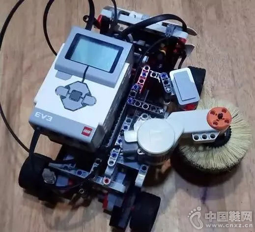 鞋子保洁机器人,是基于乐高机器人NXT套装,外加马毛旋转刷子构成。它是一台配置了颜色传感器、触碰传感器、超声传感器的轮式机器人。它还搭载了一套旋转除尘装置。能够自动清洁各类鞋子。