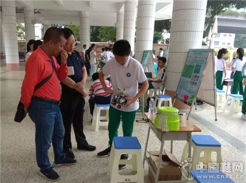 广州市海珠外国语实验中学梁俊谦同学的作品《鞋子保洁机器人》,作为入围的20项科技小发明项目作品之一参赛,迅速吸引了现场专家评委的目光。