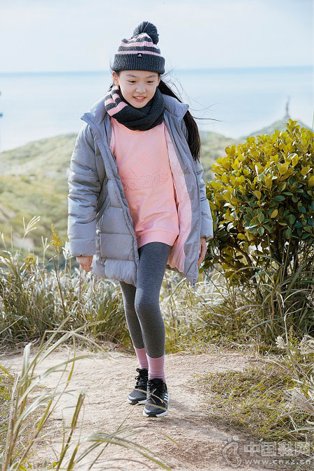 女大童装则以灰色作为主色,配上粉色内衬,突显了女孩文静而又不失俏皮的一面。厚实的充绒及加长款设计,不仅起到了保暖的作用也让冬季旅行中的女孩更显灵动。