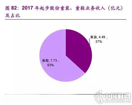 作为童鞋专业出身、童装协同发展的企业,能够始终保持童鞋市场第一份额,童装市场占有率稳步上升、齐头并进,在国内儿童服饰市场中保持竞争优势,特别在二、三线城市竞争中优势突出。2017年起步股份童鞋、童装收入规模分别为7.73亿元、4.49亿元,占收入比分别为57.70%、33.49%,此外还有少部分鞋品OEM、儿童服饰配饰等收入。