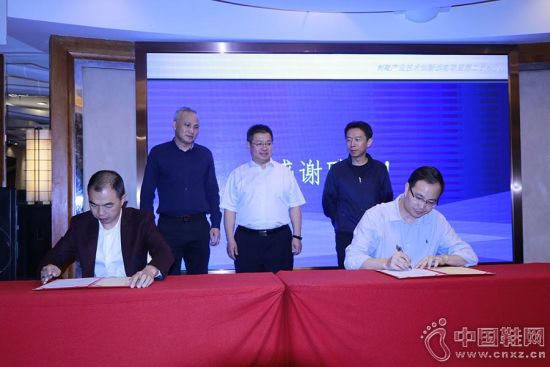 会议现场,在当地政府部门领导见证下,中鞋革晋江院院长王文琪与相关科研单位、企业签订合作协议,并举行了制鞋产业技术创新战略联盟多个项目签约仪式。