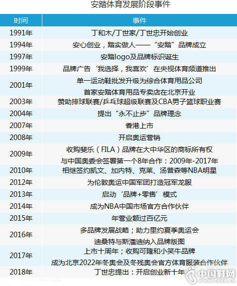 -品牌观察】安踏体育是国内拥有近27年的传统服装企业,定位于大众运动服饰品牌。1991年丁式父子创业并于1994年创立品牌,2007年在港上市,2017年为安踏上市十周年,今年创始人丁世忠提出安踏开启创业新十年。