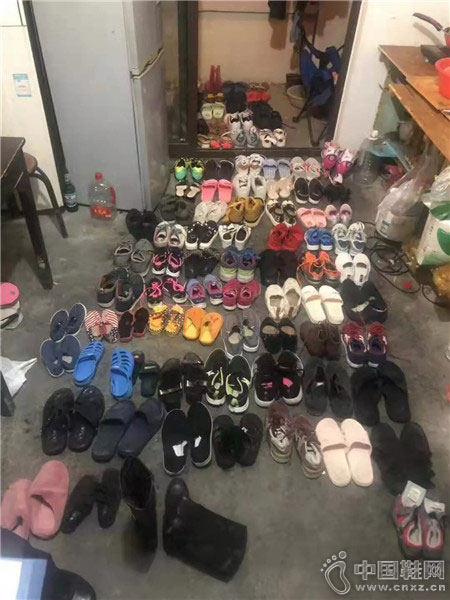 因为手头没有直接证据,民警也不好说什么。但就在快结束对话的时候,民警注意到屋内阳台上有一只大编织袋,里面感觉“有点东西”,一看,里面都是高跟鞋、高筒靴,成色也有8、9成新。