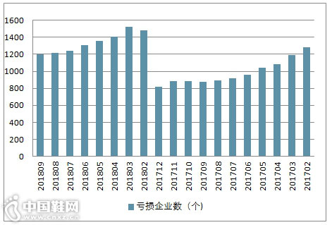 2017-2018年中国皮革、毛皮、羽毛及其制品和制鞋业亏损企业数量走势