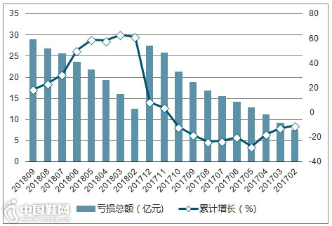 2017-2018年中国皮革、毛皮、羽毛及其制品和制鞋业亏损企业亏损总额走势
