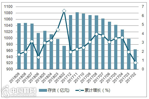 2017-2018年中国皮革、毛皮、羽毛及其制品和制鞋业存货情况走势