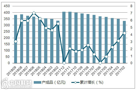 2017-2018年中国皮革、毛皮、羽毛及其制品和制鞋业产成品情况走势